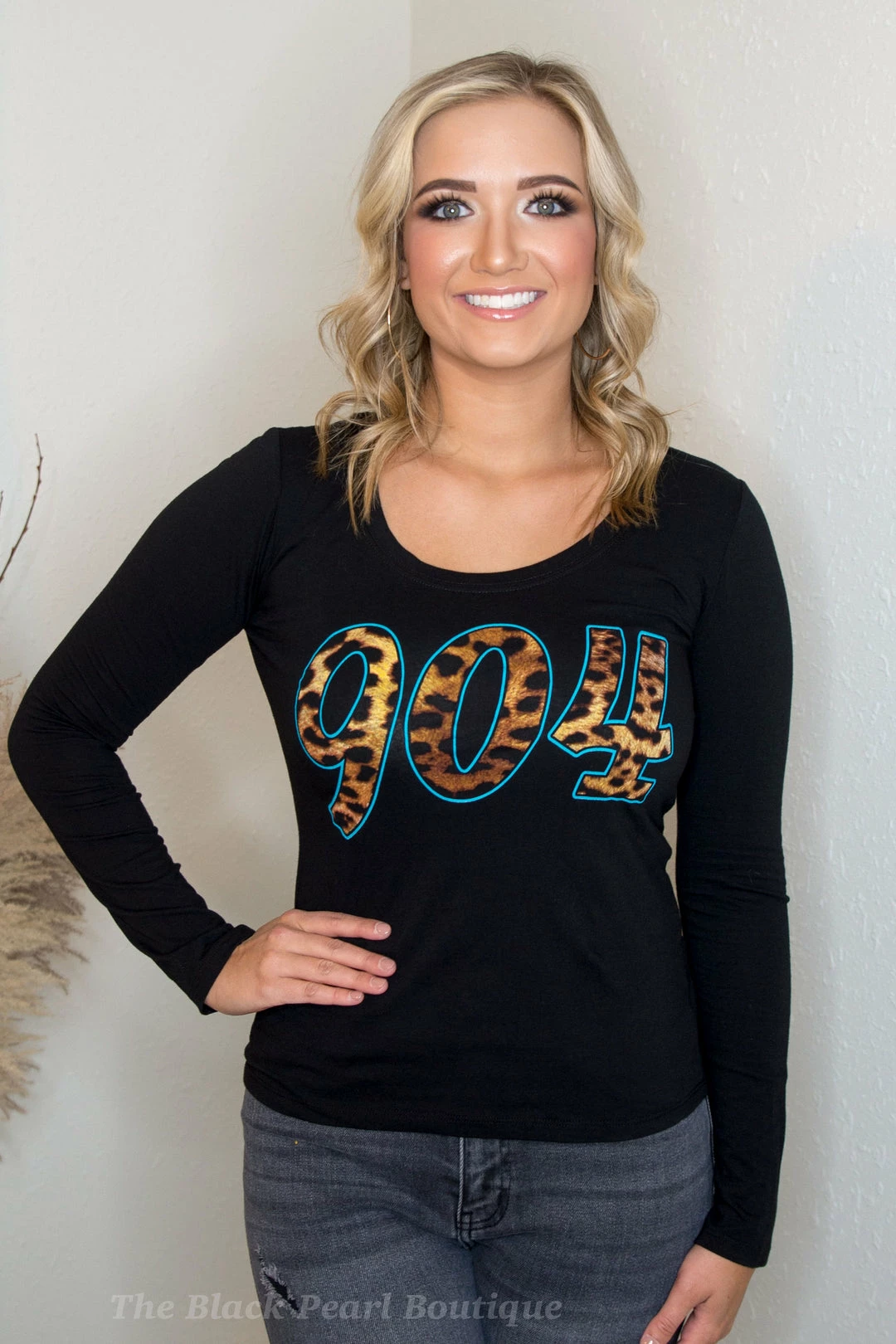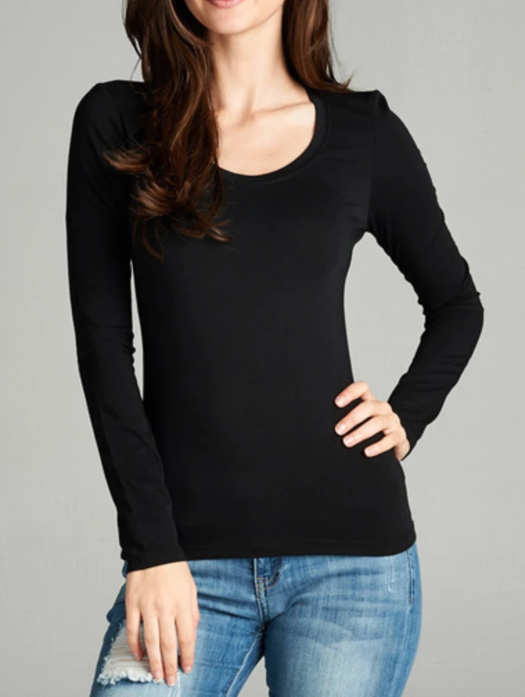 Active Basic Tops 904 Black Scoop Neck Long Sleeve