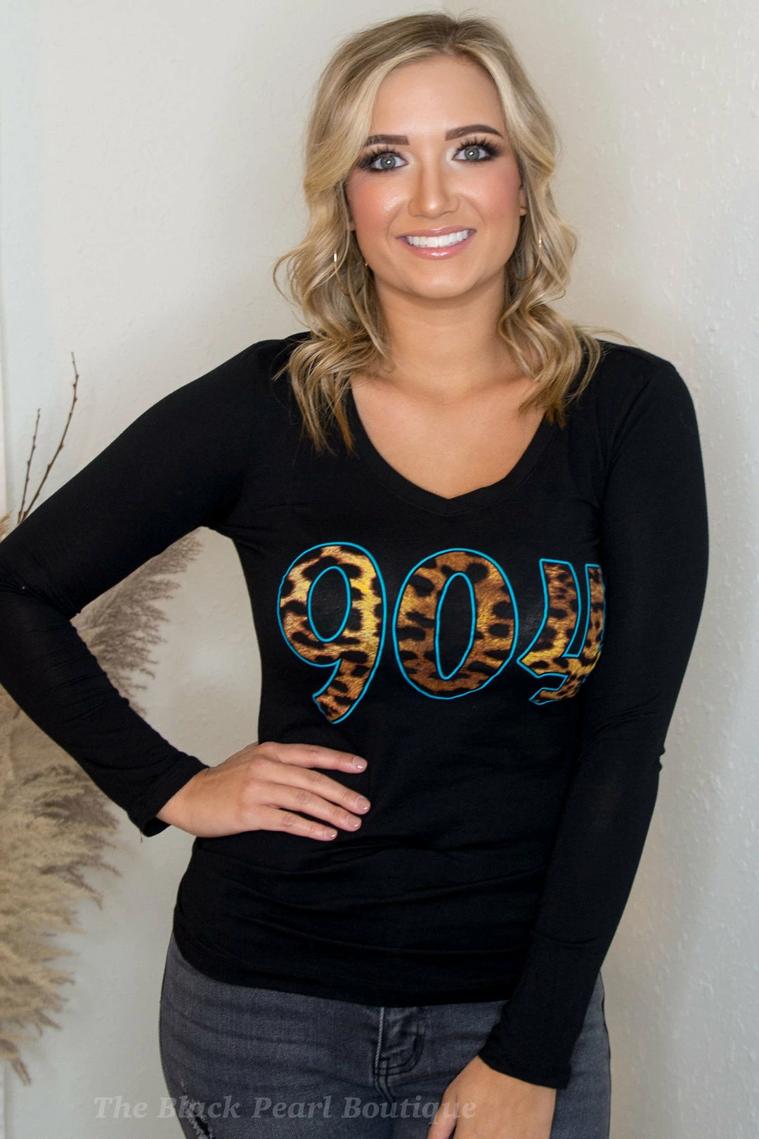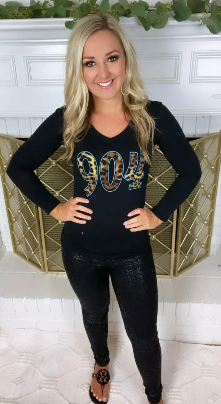 Active Basic Tops 904 Black V Neck Long Sleeve