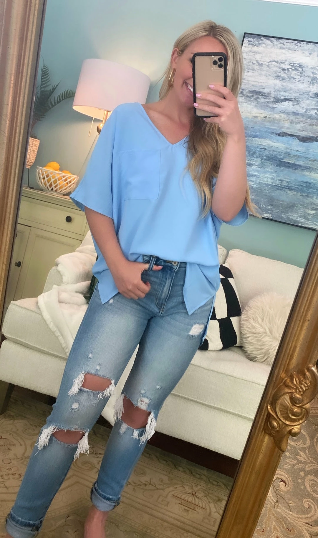 Bibi Sky Blue Oversized Top