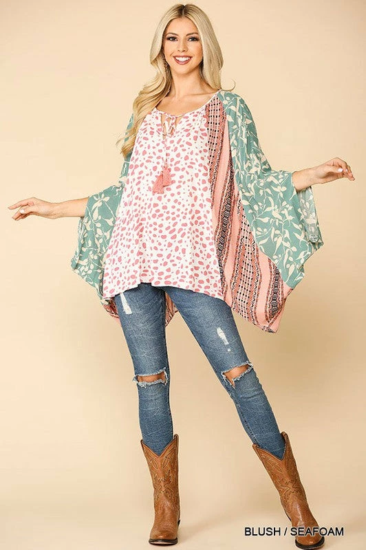 Animal Printed Dolman Sleeves Top with Tassel Model is 5'7" wearing a small.