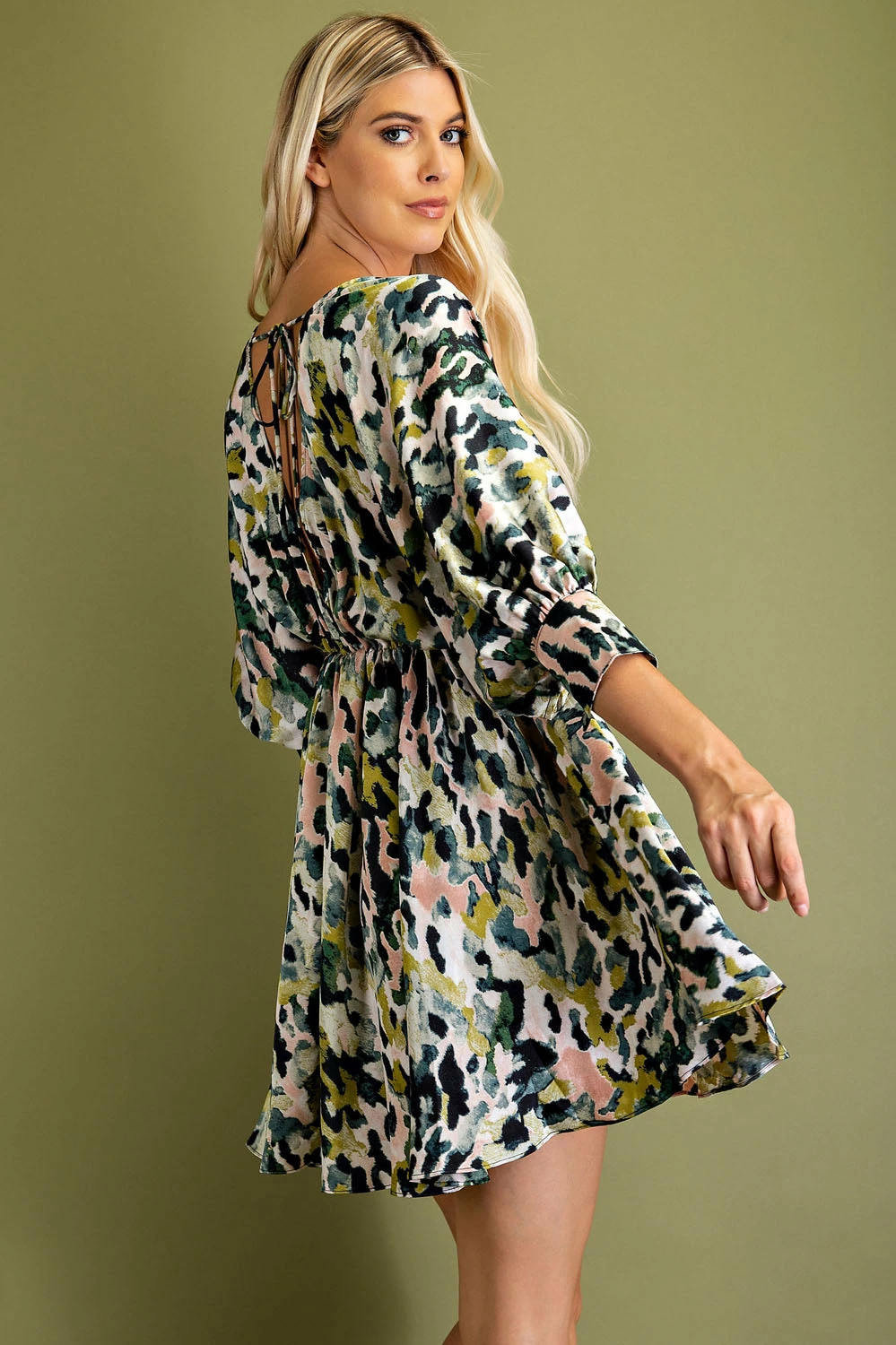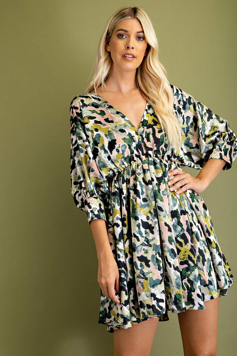 Glam Olive Ballon Sleeve Dress Dresses