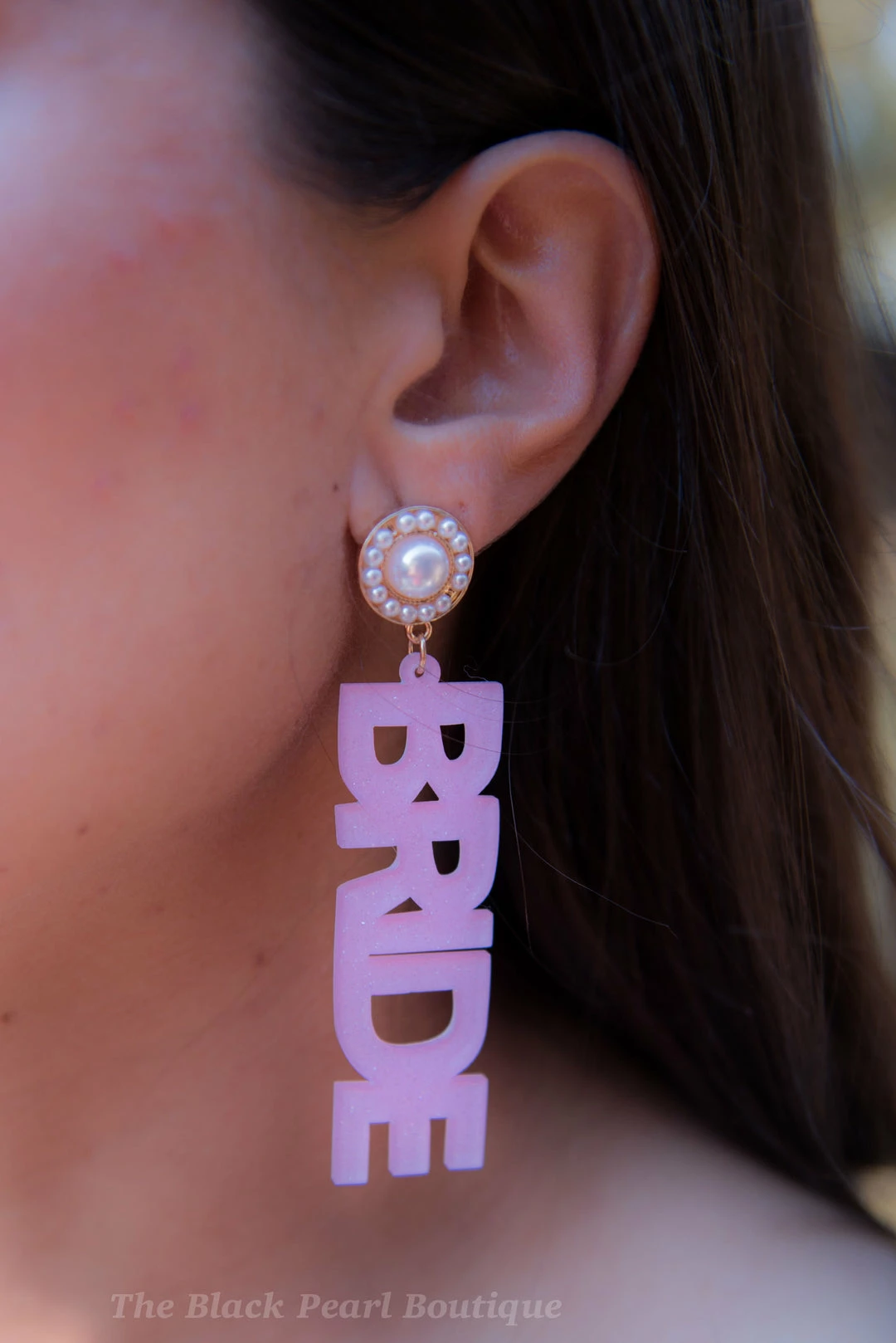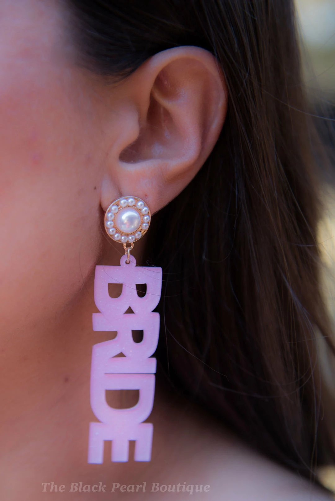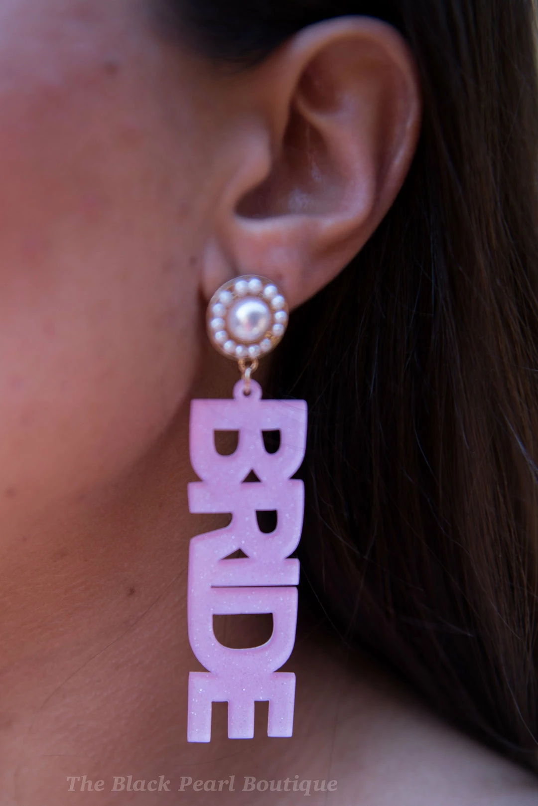 Golden Stella New Arrivals Bride Pink Glitter Acrylic Earrings