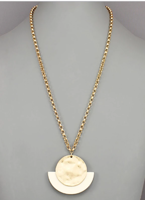 Golden Stella White Wood Wedge Disc Necklace Accessories