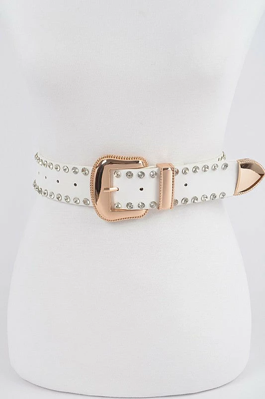 * Rhinestone Trimmed Multi Metal Plus Size Belt * POLYURETHANE/ RHINESTONE * APPROX. WIDTH:1.75".LENGTH:51.75"