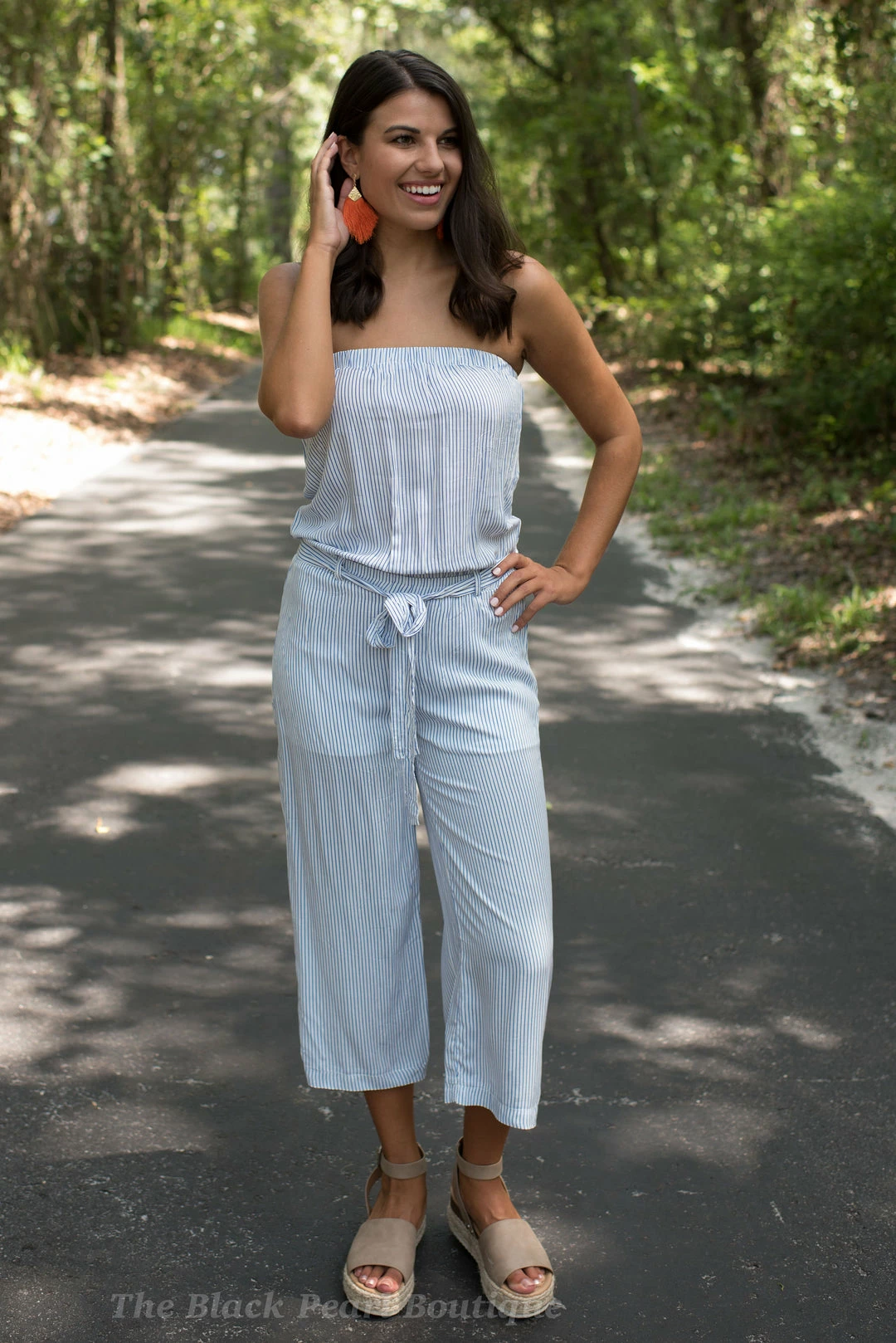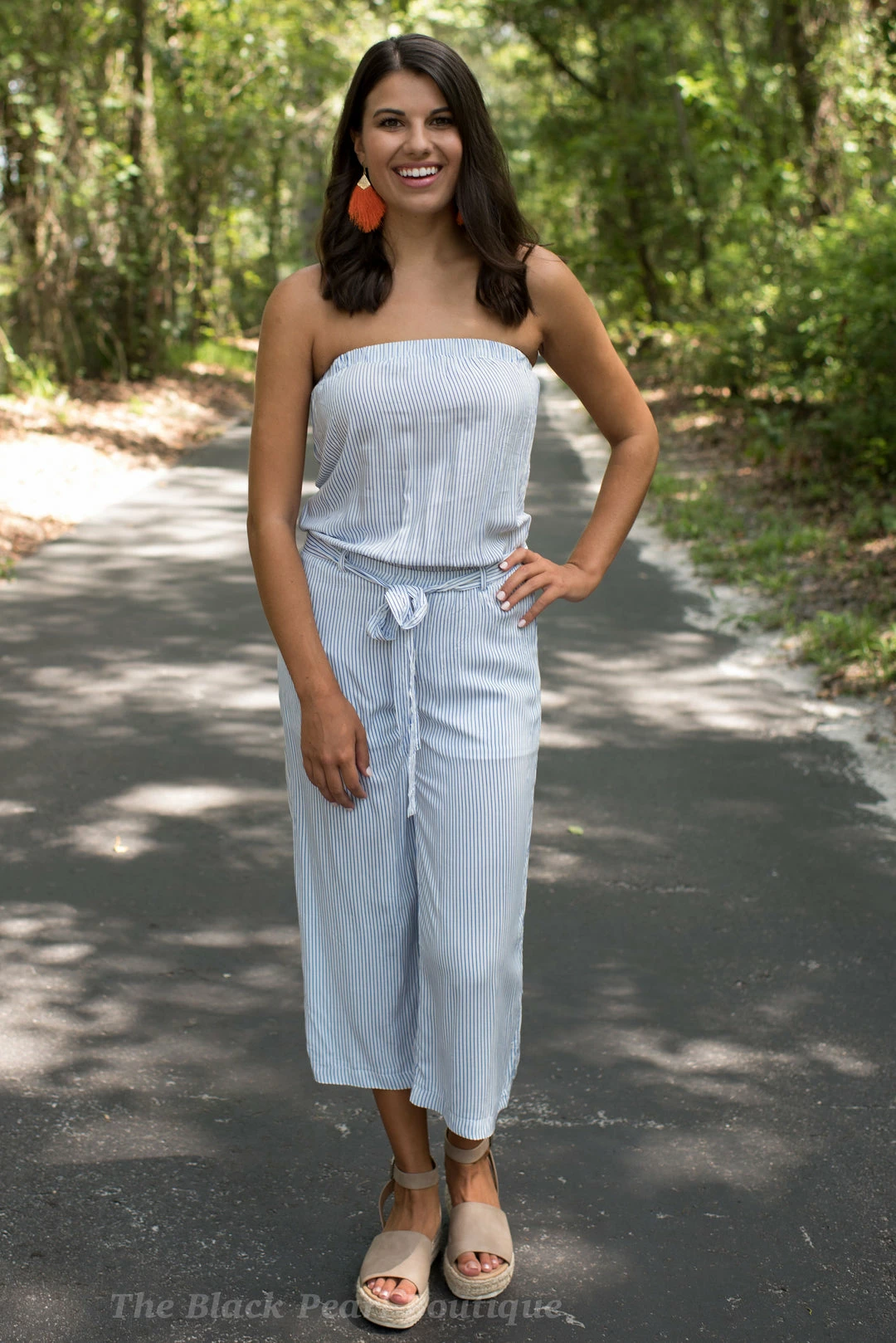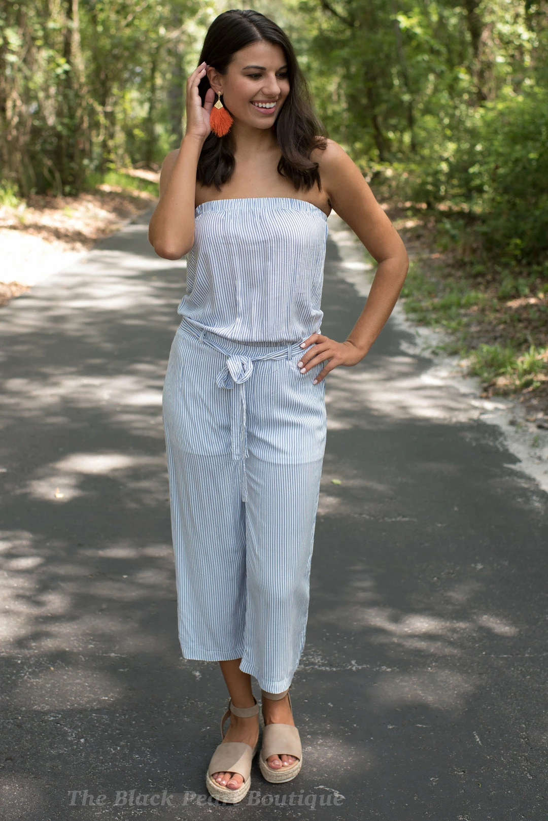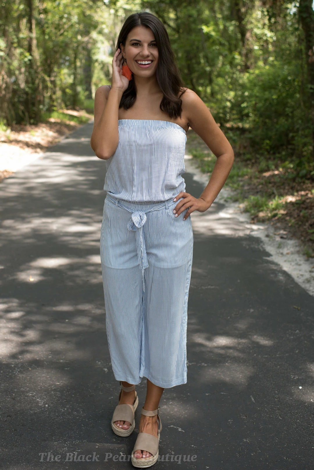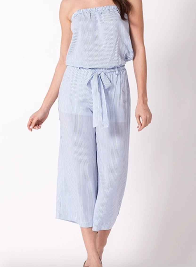 Hyfve Blue/White Striped Strapless Jumpsuit Game Day!