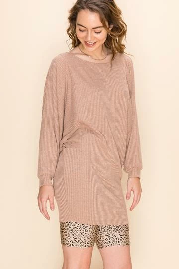 Hyfve Casual Dresses Taupe Ribbed Tunic Dress