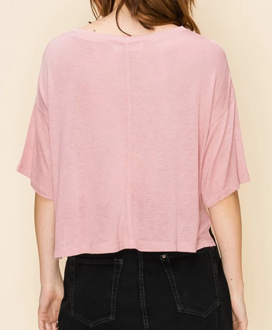 DROP SHOULDER HALF SLEEVE CROP TOP - 96% RAYON 4% SPANDEX