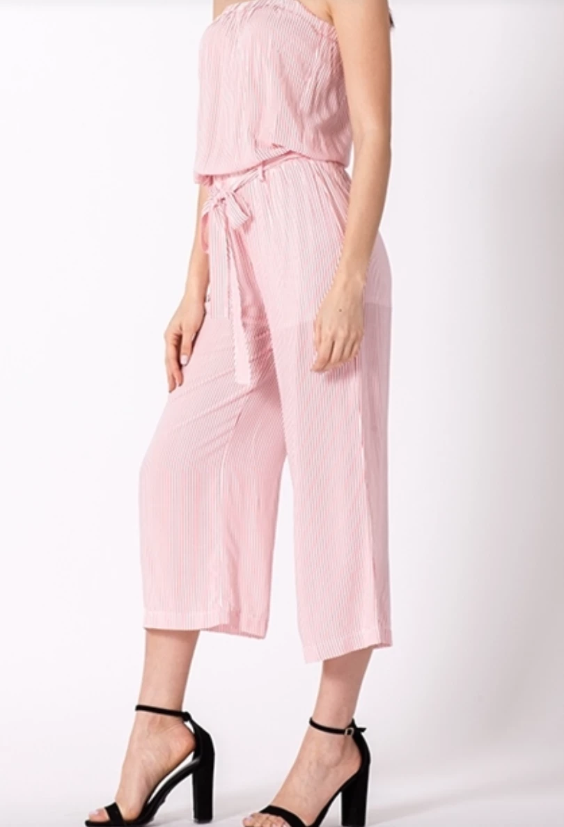 SLEEVELESS COULOTTE JUMPSUIT WITH WAIST TIE