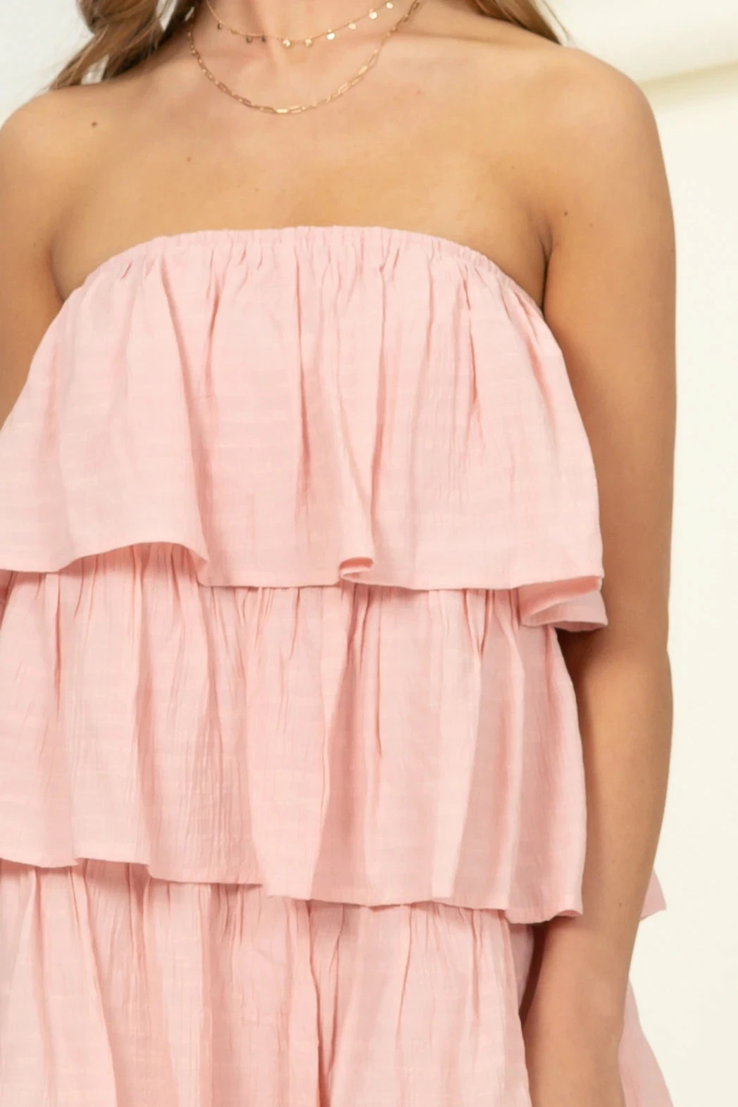 Hyfve New Arrivals Pink Ruffle Strapless Dress