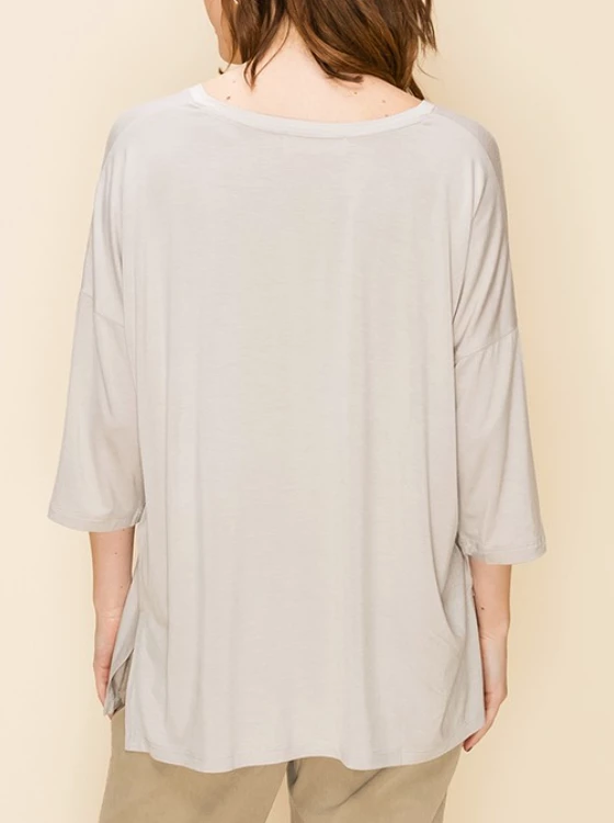 Hyfve Tops Moth Gray V Neck 3/4 Sleeve Top
