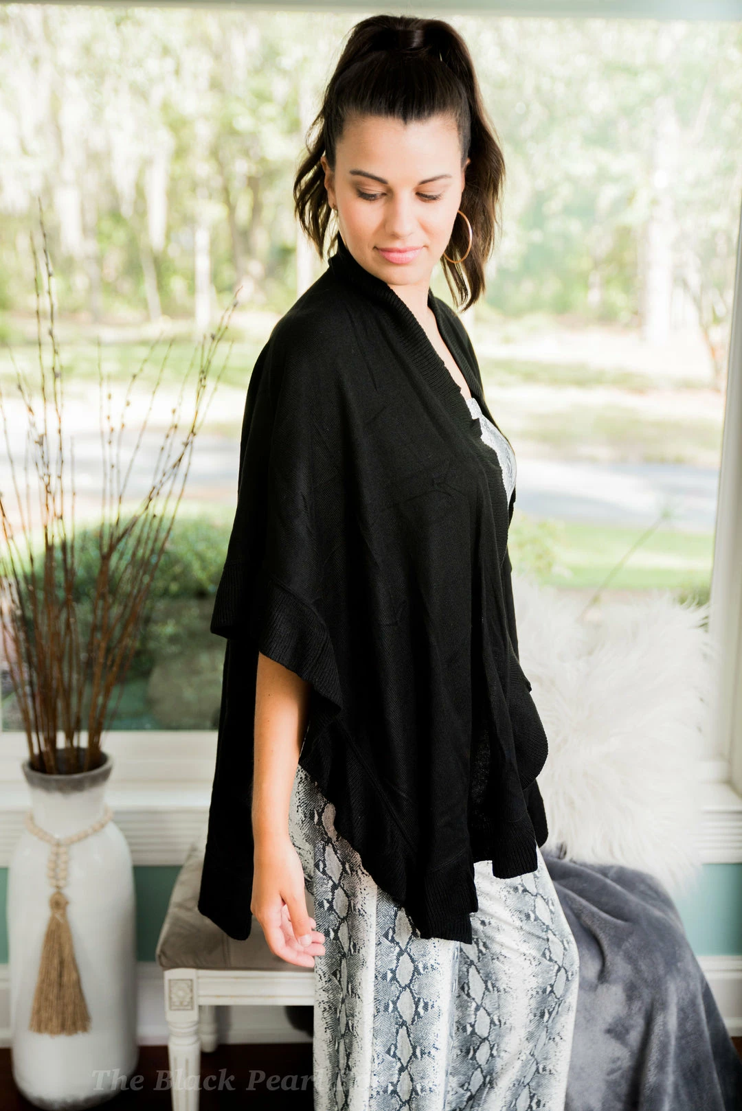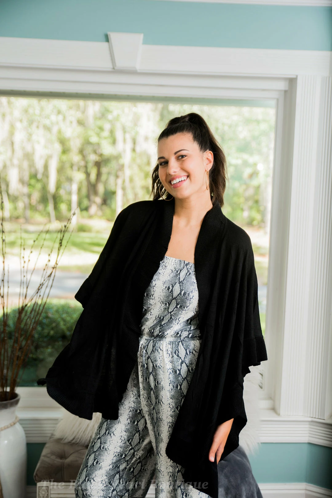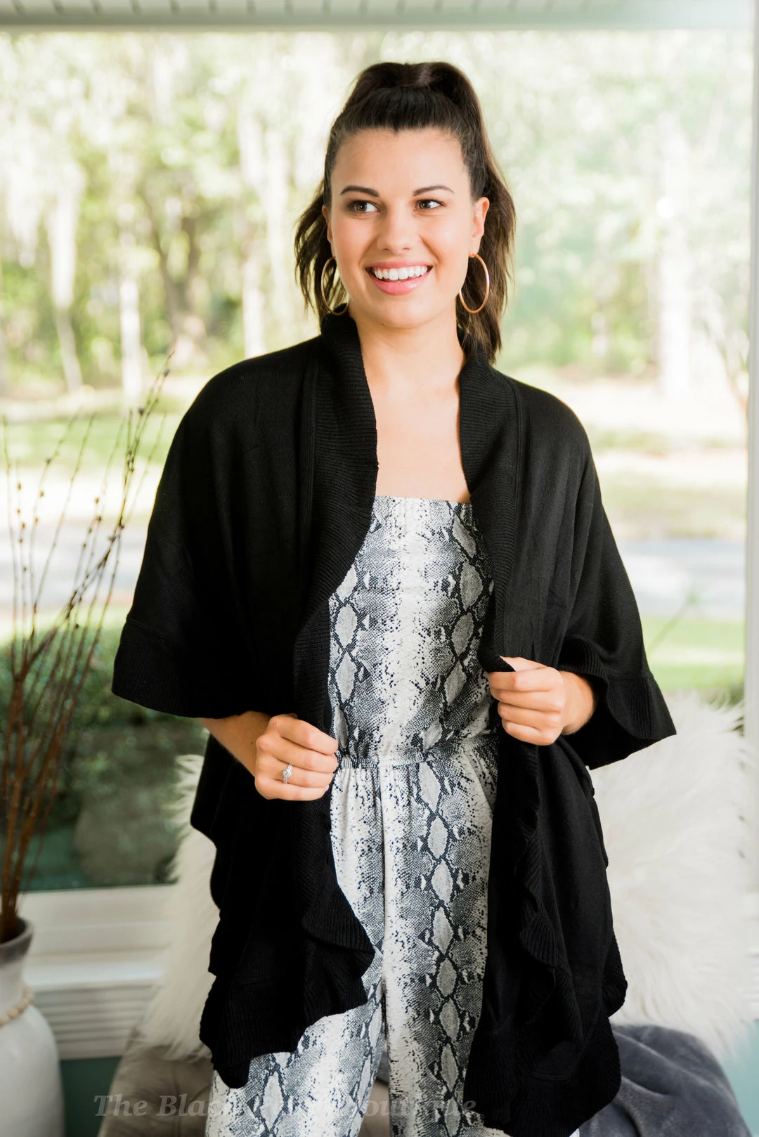 LLove Black Ruffled Poncho Cardigan Final Sale