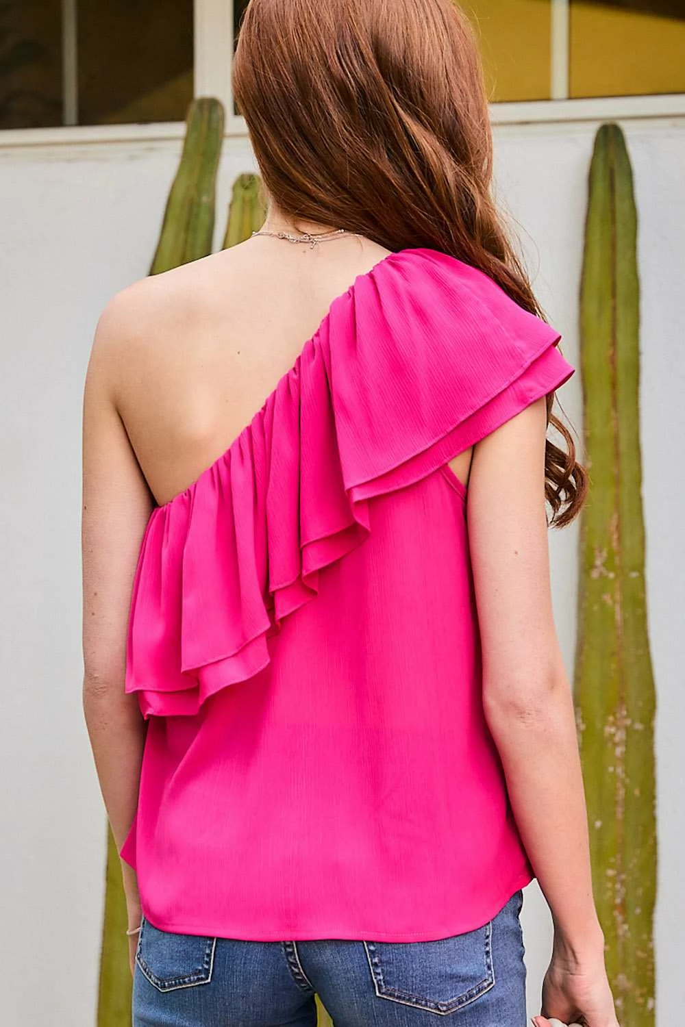 Be the first to review “Main Strip Fuchsia One Shoulder Top” Cancel reply