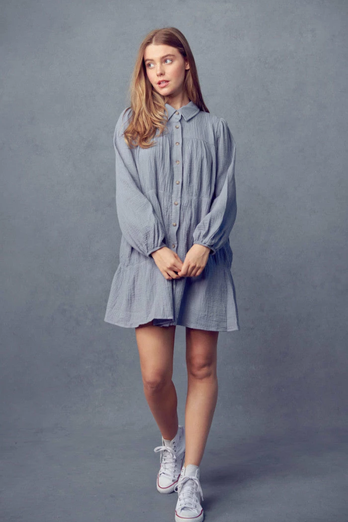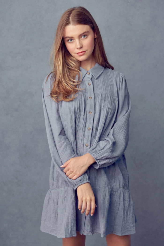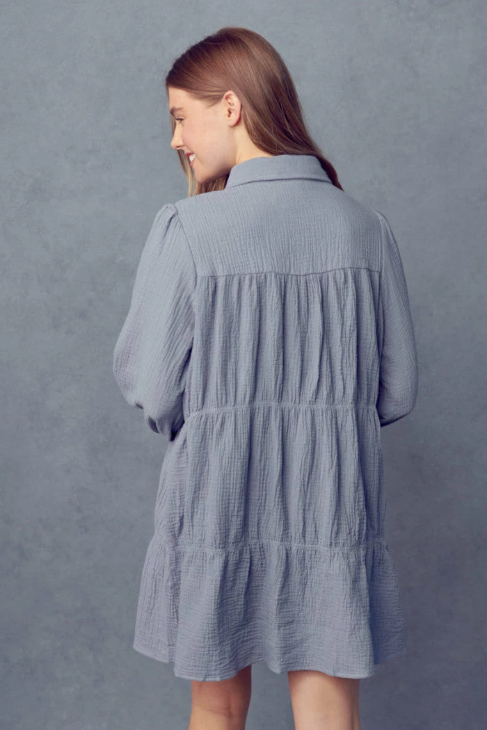 + Tiered shirring shirt dress
