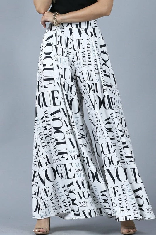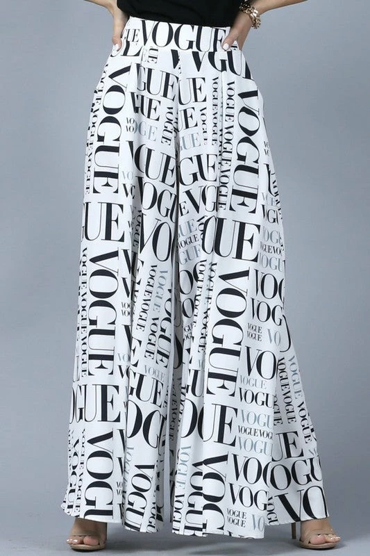 Graphic print palazzo pants. Skirt pants. Zips at side. Wide full pocket elegant style pants. Made in USA. Re stock. 5"8" 32-24-36