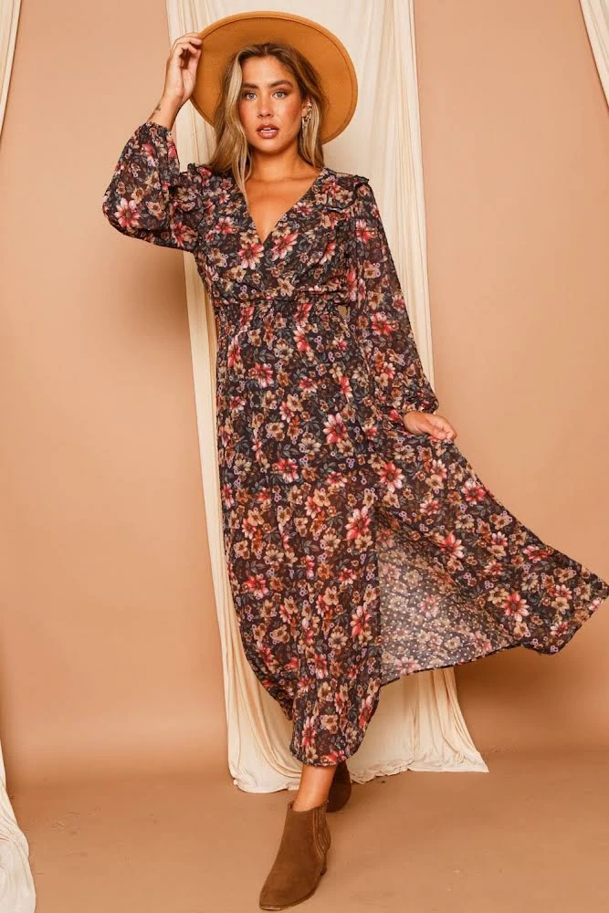 Peach Love Floral Maxi Dress Dresses