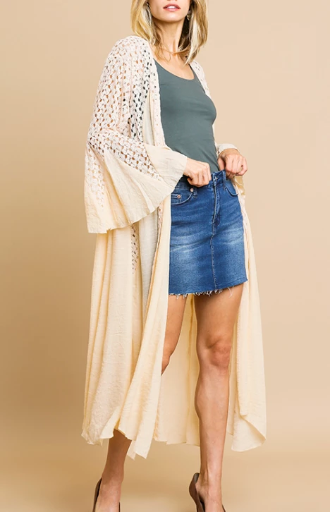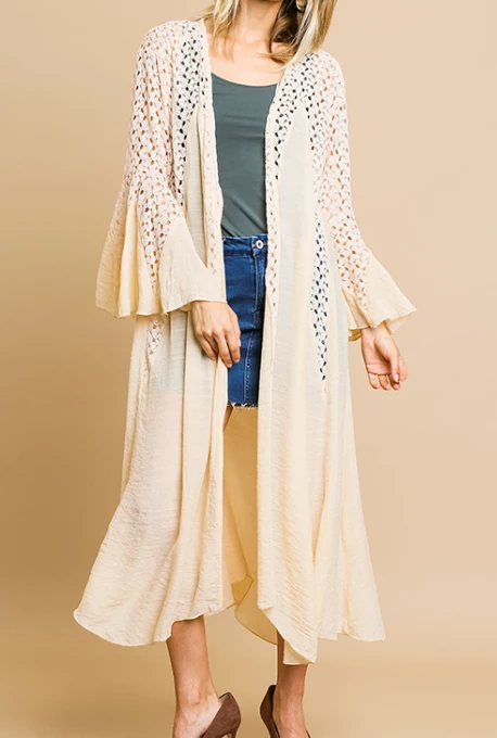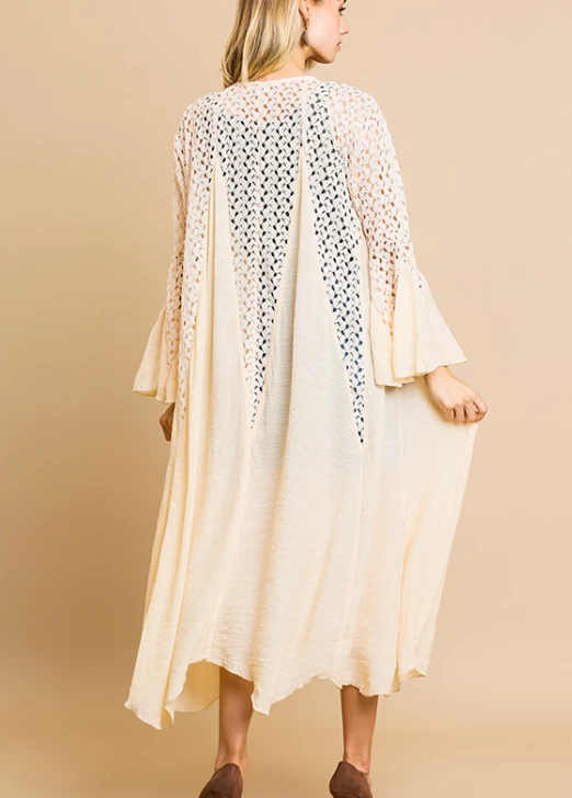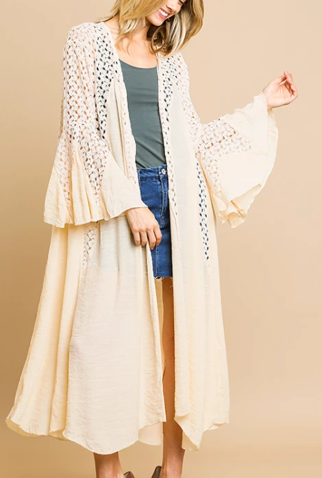 UMGEE Final Sale Cream Bell Sleeve Crochet Kimono