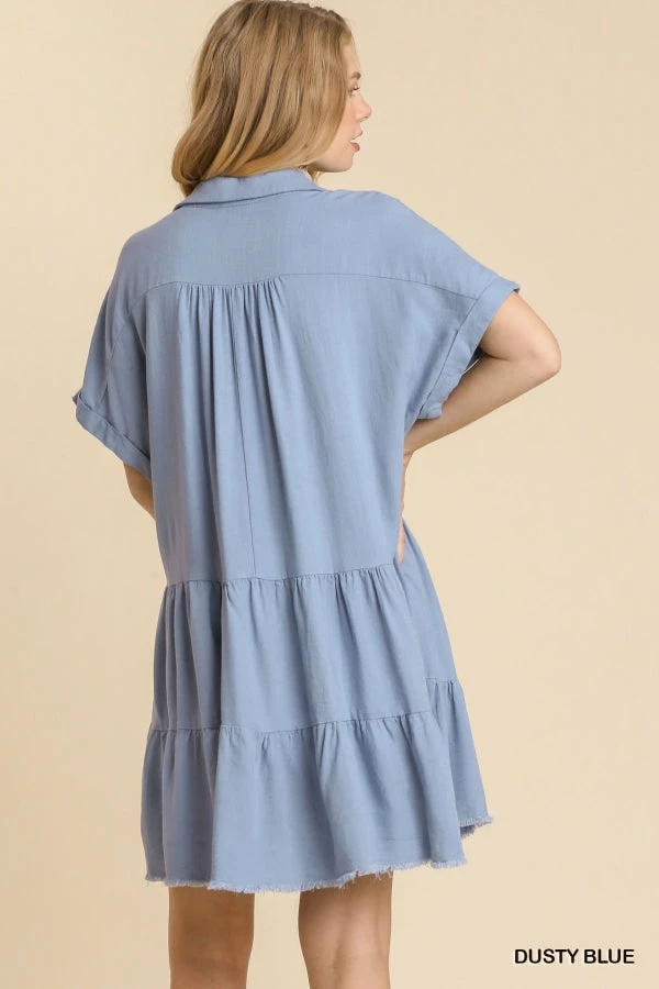 UMGEE New Arrivals Dusty Blue Linen Dress