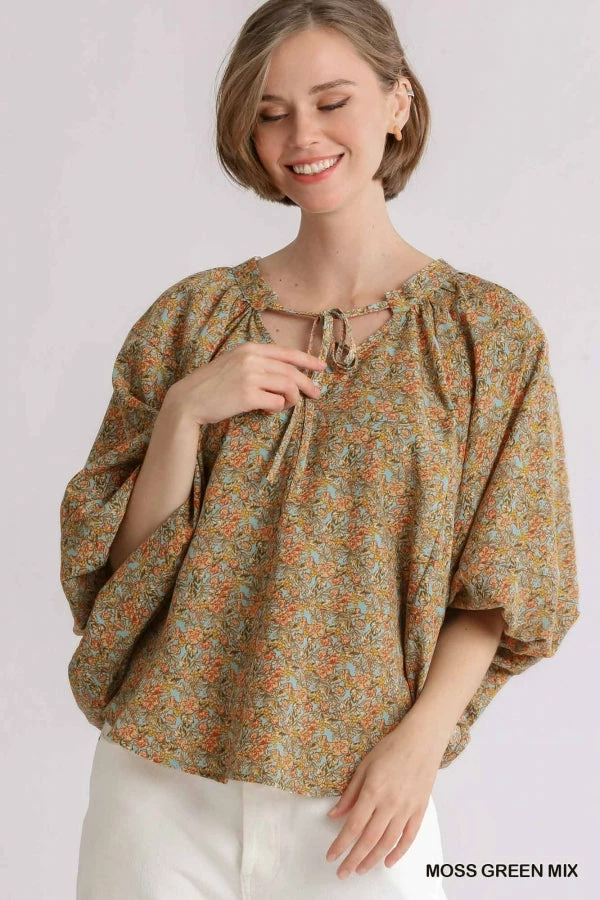 UMGEE Tops Floral Print Balloon Sleeve Top