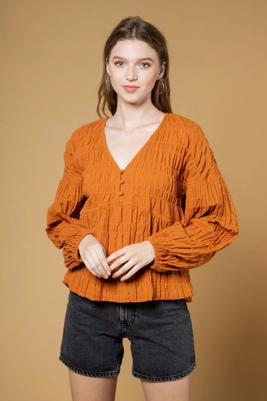 Cotton babydoll crinkle woven blouse top