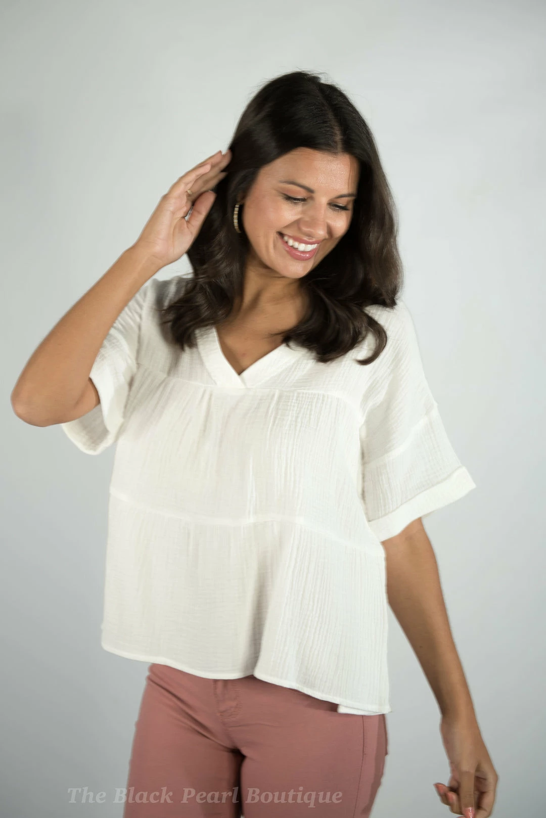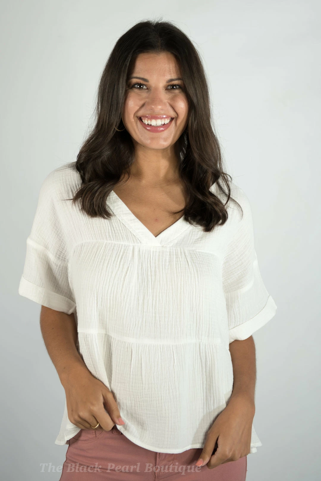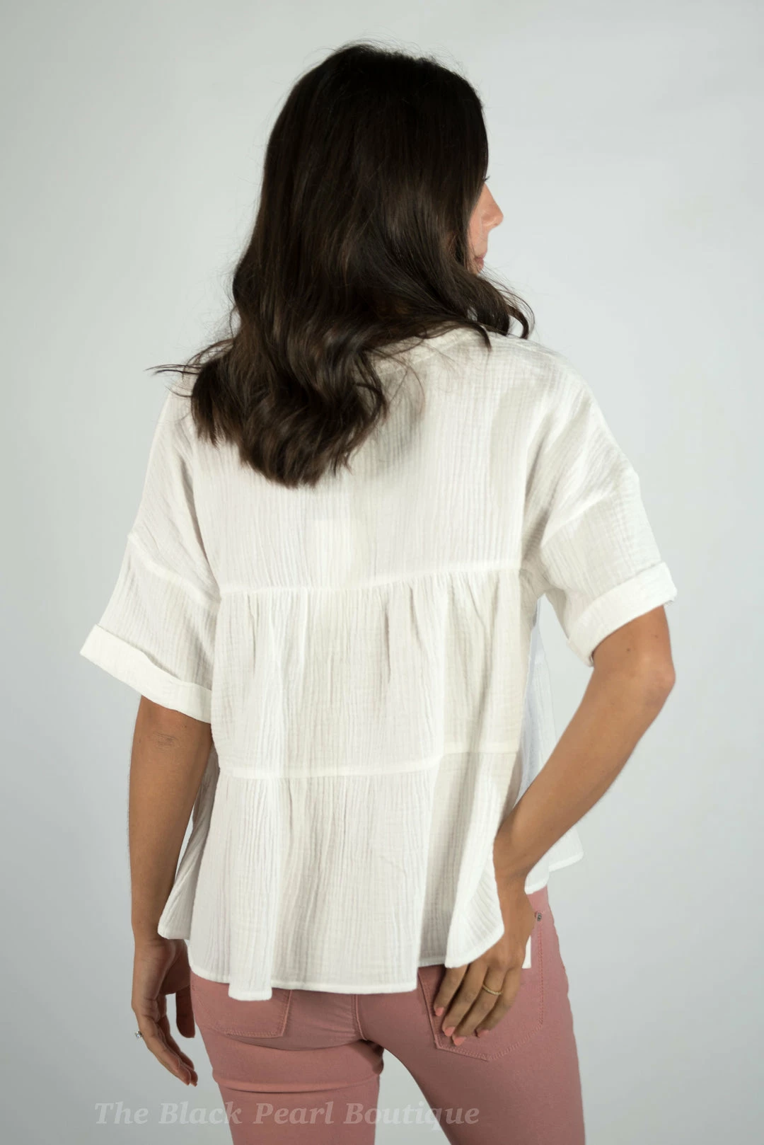 – Folded sleeve textured gauze top